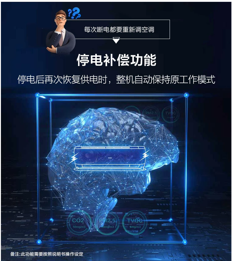 海爾節(jié)能風(fēng)空調(diào),內(nèi)外機自清潔,可深度清洗蒸發(fā)機中的灰塵,更有一鍵自清潔功能,保障空氣健康,為您的呼吸保駕護(hù)航;出風(fēng)更潔凈;一鍵PMV,舒適節(jié)能一舉兩得,一鍵開啟,空調(diào)自動進(jìn)入制冷/制熱熱模式,達(dá)到人體舒適溫度;停電后再次恢復(fù)供電時,整機自動保持原工作模式;還帶有一鍵開啟除濕功能,全屋清爽,告別悶熱。